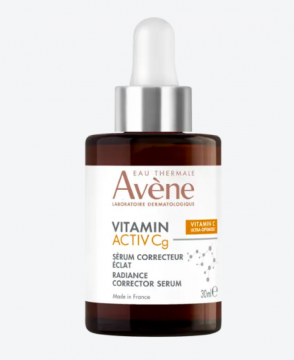 Ce sérum lisse les rides, booste l’éclat de la peau et diminue l’apparence des taches brunes grâce au trio d’actifs [Vitamine Cg + Bakuchiol + Niacinamide]. 1,8 % VITAMINE Cg reconnue pour son efficacité antioxydante équivalente à 20 % de Vitamine C Anti-rides, éclat, anti-taches Le vieillissement cellulaire induit un déclin progressif des fonctions tissulaires. Au niveau cutané, la conséquence est l'apparition de caractéristiques cliniques telles que sécheresse, taches pigmentaires, relâchement, rides… Les Laboratoires Dermatologiques Avène créent le sérum correcteur éclat, concentré en 3 actifs dermatologiques : [VITAMINE Cg*] 1,8 % : reconnue pour son efficacité antioxydante équivalente à 20 % de Vitamine C** [NIACINAMIDE] 3 % : régénère durablement la peau et réduit l'apparence des taches [BAKUCHIOL] 1,5 % : reconnu comme une alternative végétale au rétinol, corrige les rides Grâce à sa combinaison complémentaire d'actifs, ce sérum apporte un effet lumière instantané. Immédiatement : la peau est éclatante. Dès 15 jours : la peau est lissée et comme repulpée 95 %. À 1 mois : les taches sont réduites. Le sérum correcteur éclat Vitamin Activ Cg est un soin testé sur peau sensible, contenant 94 % d'ingrédients d'origine naturelle, sans ingrédients d’origine animale, dans un flacon pipette en verre.