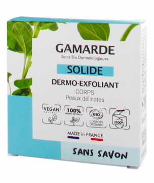 Gamarde Dermo-Exfoliant Corps Solide Bio 93 ml est un soin corps qui convient à tous types de peaux, y compris délicates. Formulé à base de doux grains de noyaux d'abricot Bio d'origine naturelle et de perlite, il débarrasse la peau de ses impuretés et des cellules mortes sans l'agresser, pour la laisser nette et douce. Sans colorant ni conservateur, sans savon ni parfum ajouté. Vegan.