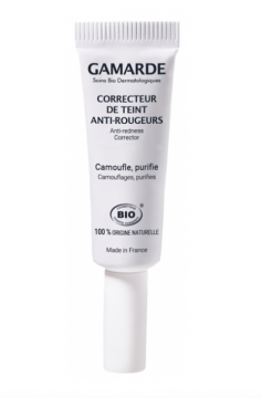 Gamarde Correcteur de Teint Anti-Rougeurs Bio 6 ml est un soin qui camoufle et purifie les imperfections des peaux délicates grâce aux pigments d'origine naturelle verts et des huiles essentielles Bio de Thym et de Tea Tree purifiantes qu'il contient. Les rougeurs sont camouflées et assainies. Sans conservateur. Sans PEG. Sans silicone.