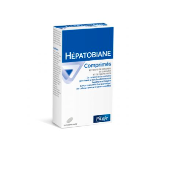 Hépatobiane est un complément alimentaire, en comprimé, à base d'extraits de romarin, de curcuma et de poivre noir, indiqué pour stimuler la fonction digestive, hépatique et biliaire. Hepatobiane apporte : Du curcuma pour favoriser la detoxication du foie Du poivre noir qui favorise l'assimilation de la curcumine Du romarin qui contribue à neutraliser les radicaux libres produits lors de la détoxication, ce qui permet de favoriser une action hépato-protectrice Certains troubles (lourdeur, somnolence après un repas) indiquent le ralentissement des fonctions digestives notamment du foie et de la vésicule biliaire.