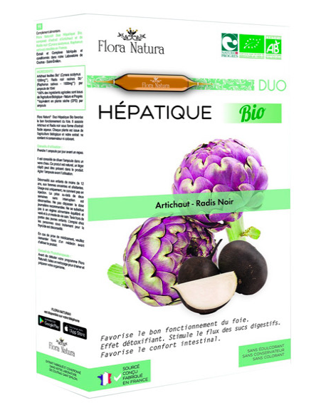 Ingrédients: eau , extraits (Artichaut Bio* (Cynara scolymus) feuilles,Radis Noir Bio* (Raphanus sativus niger) racines)
